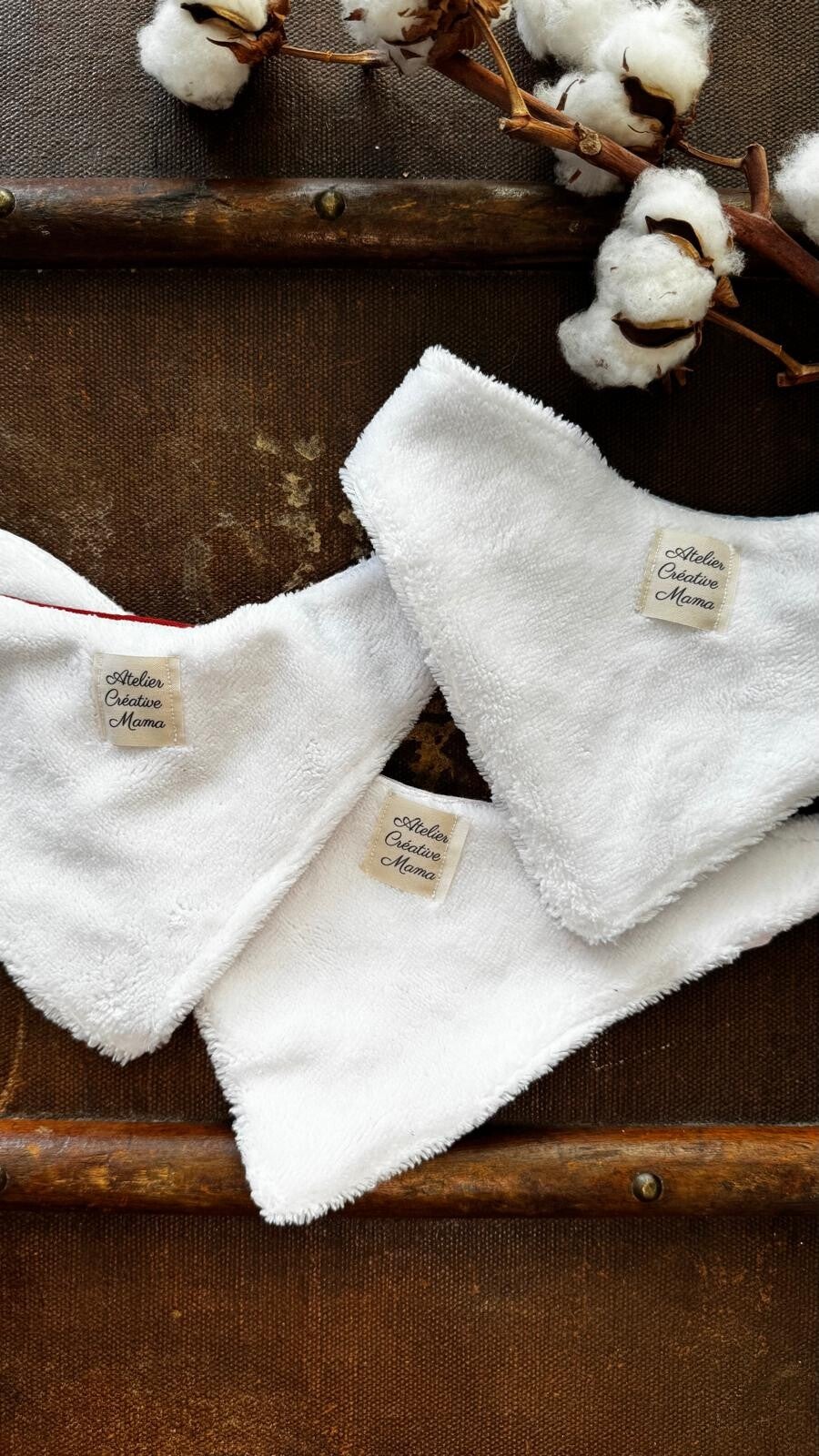 Découvrez le bavoir bandana personnalisable en double gaze de coton, confectionné à la main dans mon atelier Atelier Creative Mama.